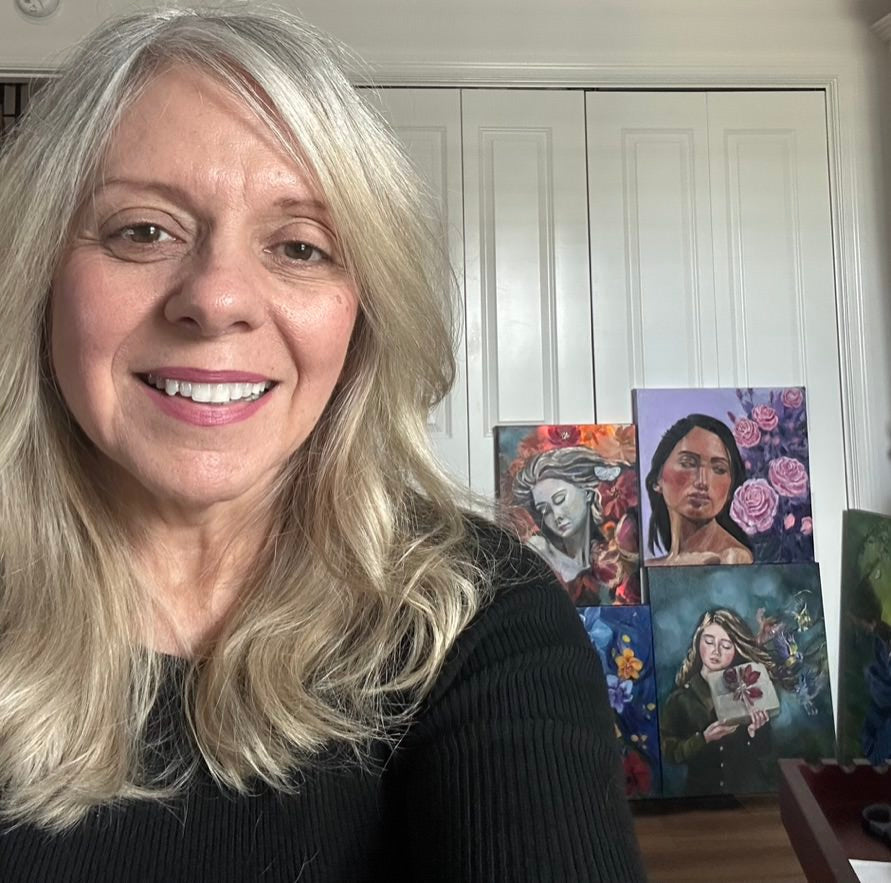 My painting artistic journey started later in life, after raising my children. I began selling my art and taking commissions almost immediately after taking art classes.